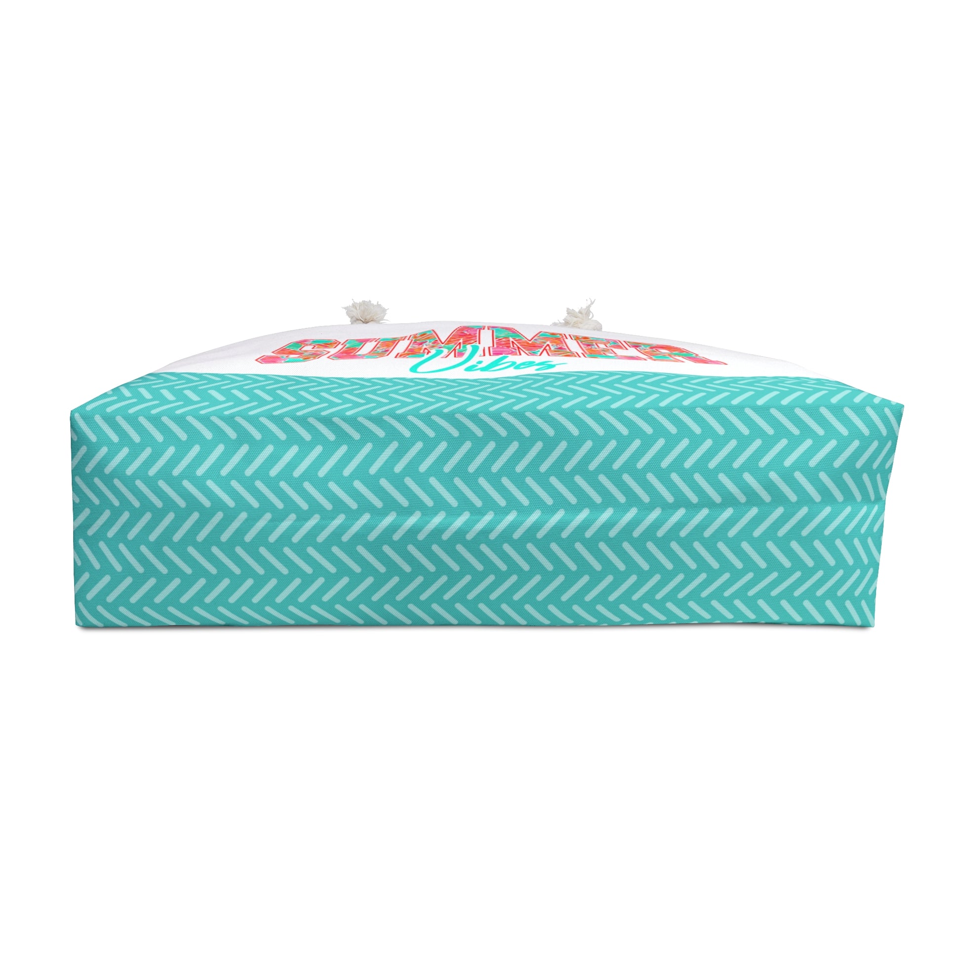 Featuring comfortable 27" cotton rope handles that add a touch of elegance, this bag is easy to carry, whether you're heading to the beach, a weekend getaway, or a casual day out. The lively 'Summer Vibes' design radiates joy and is sure to uplift your spirit! The cream sheeting interior provides a soft touch, making it perfect for storing delicate items.